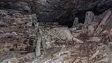 Tem alguns salões que atingem alturas próximas a 20 metros, que contrastam com galerias com teto a cerca de 1,5 metro de altura. Quanto ao piso é totalmente irregular, formado por vezes de blocos, noutras partes em arenito, e possui vários abismos e muitos blocos instáveis que requerem cuidado maior ao percorrer estes setores. A fauna ali é escassa, registrando-se a presença de aracnídeos (aranhas e escorpiões), além de insetos e morcegos.[3]