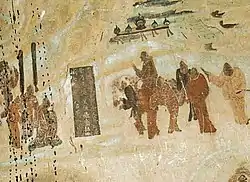 ![]() Zhang Qian deixando o imperador Han Wudi para a sua expedição na Ásia Central. Grutas de Mogao. | |