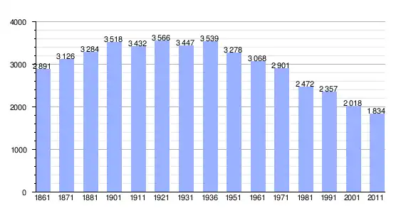 | Variação demográfica do município entre 1861 e 2011[3] |