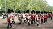 A cerimônia do pôr do sol, a Beating Retreat na Parada dos Guardas a Cavalo (Horse Guards Parade) evoluiu para um concurso colorido de música militar e broca de precisão realizada pelas Bandas Montadas da Cavalaria Domiciliar (Mounted Cavalry Bands of Household Division).