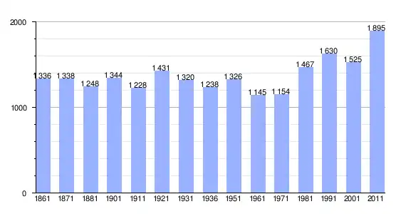 | Variação demográfica do município entre 1861 e 2011[3] |