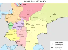 O Gubernia de Quieve, juntamente com outros sete gubernias, foi estabelecido em 29 de dezembro de 1708, por um decreto do Czar Pedro, o Grande.[2] Tal como acontece com o resto dos gubernias, nem as fronteiras nem as subdivisões internas do Gubernia de Quieve foram definidas; em vez disso, o território foi definido como um conjunto de cidades e as terras adjacentes a essas cidades.[3] O território original baseava-se aproximadamente na Terra de Siever cercada pelos gubernia de Esmolensco, Moscou e Azove.