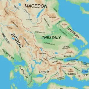 ![]() ![]() Mapa da região norte da Grécia na época da Guerra Etólia | |||