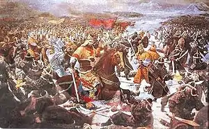 A Guerra Goguryeo-Sui foi uma série de invasões lançadas pela Dinastia Sui da China contra Goguryeo, um dos Três Reinos da Coreia, entre 598 D.C. e 614 D.C. [13] Resultou na derrota dos Sui e foi um dos fatores cruciais no colapso da dinastia, que levou à sua derrubada pela Dinastia Tang em 618 D.C. [13]