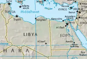 ![]() Mapa da fronteira entre Líbia e Egito | |||