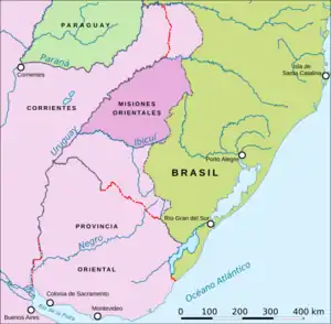 Naquele tempo, era pouco povoada essa região situada entre a fronteira Sul do Brasil Colonial e o Governatorato do Rio da Prata (Gobernación del Río de la Plata ou Gobernación de Buenos Aires). Espanha reivindicou a área com base na Tratado de Tordesilhas de 1494, mas Portugal tinha fundado em 1680 a primeira cidade do território, a Colónia do Sacramento. A Espanha tomou a cidade duas vezes, em 1681 e em 1705, mas teve de devolvê-la aos portugueses pela Tratado de Utrecht, assinado em 1713.