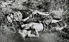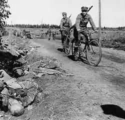 ![]() Soldados finlandeses passam junto a cadáveres de soldados russos em Sommee. | |||
