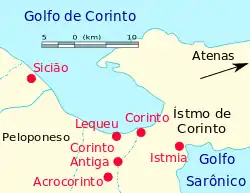 Depois de 8 anos de confrontos, a Guerra de Corinto se encerrou.[40]