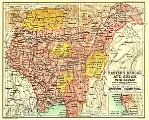 ![]() Mapa de Butão e da Índia Britânica no início do século XX | |||