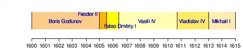 - Chester S. L. Dunning, Russia's first civil war: The Time of Troubles and the founding of the Romanov dynasty, Pennsylvania State University Press, 2001, ISBN 0-271-02074-1 (partes disponíveis no Google Print)