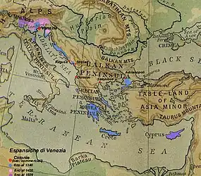![]() Mapa da expansão da República de Veneza a partir do século XIV | |||
