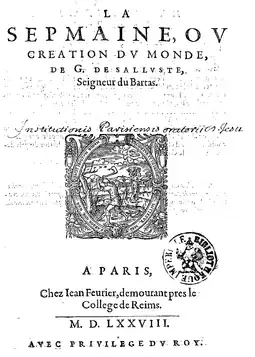 - La Semaine ou Création du monde (1581), ed. Yvonne Bellenger, Paris, STFM, 4.ª ed. 1994.