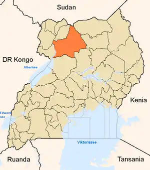 A sede do distrito, a cidade de Gulu, está a aproximadamente 340 quilômetros (210 mi), por rodovia, da capital do país, Kampala.[2]
