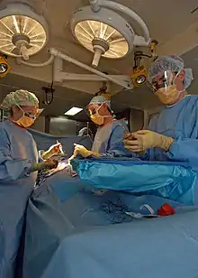 A cirurgia é recomendada para alguns tipos de hérnias, a fim de evitar complicações como obstrução do intestino ou estrangulamento do tecido, embora as hérnias umbilicais e as hérnias de hiato possam ser observadas ou tratadas com medicação.[18] A maioria das hérnias abdominais pode ser reparada cirurgicamente, mas a cirurgia tem complicações. O tempo necessário para a recuperação após o tratamento é reduzido se as hérnias forem operadas laparoscopicamente. No entanto, a cirurgia aberta pode ser realizada algumas vezes sem anestesia geral.