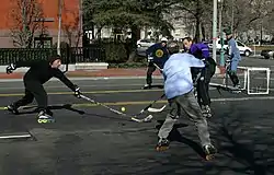 Praticantes do hóquei de rua.