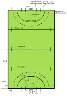 - «Hockey Pitches – Basic Information» (PDF). Great Britain Hockey. Consultado em 11 de março de 2018