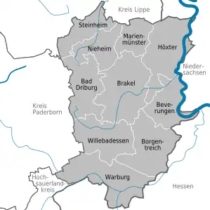 Os municípios do distrito de Höxter possuem todos estatuto de "cidade" (populações em 31/12/2009):