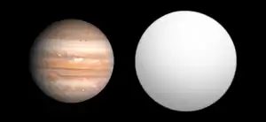 ![]() Comparação de tamanho entre HR 8799 d (à direita) e Júpiter. | ||