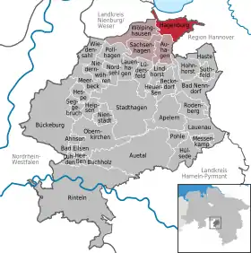 | Localização de Hagenburg no distrito de Schaumburg | |