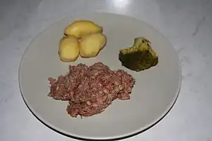 É preparado com carne picada de suíno, bovino, borrego e, por vezes, também com carne de caça. É comum utilizar-se carne salgada, carne fumada e carne fresca ao mesmo tempo. As carnes são cozidas,[1] misturadas com cevada e temperadas com pimenta. O prato é normalmente servido com batata cozida.