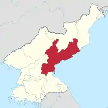 A província faz fronteira com Ryanggang ao norte, Hamgyŏng Norte ao nordeste, Kangwŏn ao sul e P'yŏngan Sul ao oeste. Ao leste da província está o mar do Japão (mar leste da Coreia).