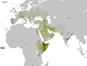 - Luis JR, Rowold DJ, Regueiro M; et al. (2004). «The Levant versus the Horn of Africa: evidence for bidirectional corridors of human migrations». Am. J. Hum. Genet. 74 (3): 532–44. PMC 1182266