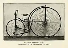 Patented by Henry Lawson in 1879, this bicycle represents the first step in the evolution of the modern safety cycle. Although like the ordinary or penny-farthing bicycle, the front wheel remained larger than the rear, the difference in size was not so exaggerated, making it lower, and therefore safer than its forerunner. Lawson's Bicyclette also featured the innovation of a chain drive to the rear wheel.