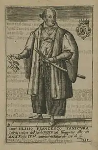 - Collega alter legatus Philippus Fiaxecura [sic] postquam ad prædictum Regem suum pervenit, ab ipso valdè est honoratus, & in proprium statum missus, ut tam longâ viâ fessus reficeretur, ubi uxorem, filios, domesticos cum multis aliis vasallis Christianos effecit, aliisque nobilibus hominibus consanguineis & propinquis suasit ut fidem reciperent; quam utique receperunt. Dum in his & aliis piis operibus exerceretur ante annum completum post eius regressum magna cum omnium ædificatione & exemplo, multa cum præparatione suis filiis hæreditate præcipua fidei propagationem in suo statu, & Religiosorum in eo regno pretectionem commendatam relinquens, pie defunctus est. De cuius discessu Rex & omnes Nobiles valdè doluerunt, præcipuè tamen Christiani & Religiosi, qui huius viri virtutem & fidei Zelum optimè noverant. Ab ipsis Religiosis, qui eidem sacramenta ministrarunt, eiusque obitui interfuerant; & ab aliis sic per literas accepi. (p. 16[ligação inativa])