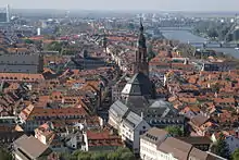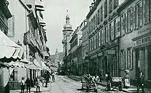 Já entes da fundação da cidade em ca. 1220 existia no local da atual Hauptstraße um caminho, que no estabelecimento da cidade era usado como uma espinha dorsal. Em 1391 esta estrada foi denominada Obere Gasse, em 1491 platea magna (grande estrada) e em 1508 Speierer Straße. Desde 1689 é denominada Hauptstraße.[3] Nas suas extremidades leste e oeste havia portais. No leste, na área da atual Plankengasse, estava a Obere Tor, que foi substituída pelo Karlstor no século XVIII. Na extremidade leste, na área da atual Universitätsplatz, estava localizado o Niedere Tor, também denominado Speyerer Tor, mais tarde denominado Mitteltor, que foi demolido em 1827. No processo de expansão da cidade foi construída em 1392 uma ponte sobre o fosso existente neste local, sendo a Hauptstraße prolongada para o oeste. Na nova fronteira oeste da cidade foi construída a Speyerer Tor, substituída depois pela Mannheimer Tor na área da atual Bismarckplatz.[3]