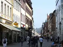 Antigamente a Hauptstraße foi um importante eixo de ligação também para o tráfego motorizado e um trecho da linha de bonde. Atualmente é um calçadão, com exceção do trecho entre o Kornmarkt e a Karlstor. É a mais significativa rua de comércio de Heidelberg e uma das mais frequentadas da Alemanha (2013: Posição 43), na média dos anos 2004–2013 foram registradas 5618 pessoas por hora.[6] Ao lado do comércio varejista estão diversos restaurantes, alguns deles históricos, bem como instalações como a prefeitura, o Kurpfälzisches Museum der Stadt Heidelberg e partes da Universidade de Heidelberg.