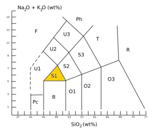 - Le Bas, M. J.; Streckeisen, A. L. (1991). «The IUGS systematics of igneous rocks». Journal of the Geological Society. 148 (5): 825–833. Bibcode:1991JGSoc.148..825L. CiteSeerX 10.1.1.692.4446