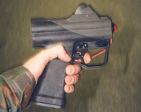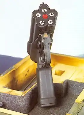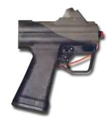 Como os cartuchos de formato comum são imprecisos e têm um alcance muito curto quando usados embaixo d'água, esta pistola dispara dardos de aço.[1] Tem cinco canos, cada um dos quais é carregado com um cartucho, dando à arma uma aparência de uma arma de fogo do tipo "pepperbox", e é acionado eletricamente por uma bateria no cabo da pistola.[2]
