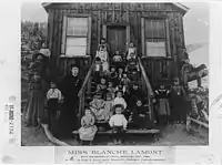 Blanche Lamont e os seus alunos na escola de Hecla.