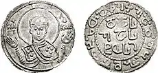 ![]() Fragmento de um afresco no mosteiro de Oshki, possivelmente representando o casamento de Helena e Pancrácio IV[1] | |