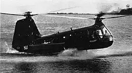 Os helicópteros podem ser projetados para suportar contato limitado com a superfície de um corpo d'água. O Vertol HUP-2 de 1958 foi um desenvolvimento anfíbio do Piasecki HUP Retriever de rotor duplo, que reforçou seu casco e substituiu as janelas do nariz inferior por alumínio resistente.[16] O HUP-2 foi fornecido com um par de estabilizadores posicionados no meio da aeronave. O HUP-2 foi capaz de taxiar para a frente ou para trás na água, independentemente da direção do vento.[17]