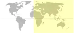 O hemisfério oriental engloba todas as áreas da Terra situadas a leste da longitude 0° e a oeste da longitude 180°, incluindo a maior parte da Europa, da África, toda a Ásia e a Oceania, assim como parte da Antártida.[1] Inclui todo o Oceano Índico, uma pequena parte do Atlântico e cerca de metade do Pacífico.