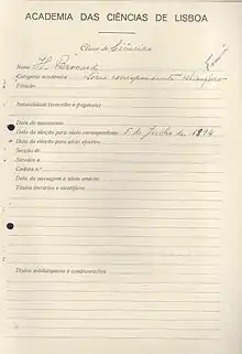 Registro manuscrito da Academia das Ciências de Lisboa