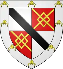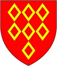 - Gules, seven mascles or 3,3,1. Estas armas são mostradas no selo do bispo.