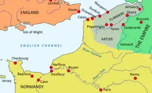 O bispo emitiu mandatos para a publicação das bulas[17] e o arcebispo fez o mesmo.[18] O empreendimento foi ardentemente apoiado pelos frades e contribuições de imenso valor foram feitas de todos os quadrantes, mas especialmente, segundo Henry Knighton,[19] das "ricas damas da Inglaterra". Os ingleses desembarcaram em Calais em maio de 1383 e passaram a atacar Gravelines, que estava nas mãos dos franceses. Gravelines, Dunquerque e o país vizinho (incluindo as cidades de Bourbourg, Bergues, Poperinge e Nieuport) logo caíram. Em 25 de maio, os cruzados puseram em fuga um exército franco-flamengo, sob o comando do conde de Flandres, em uma batalha campal travada perto de Dunquerque.[20][21] Despenser foi então persuadido por seus seguidores a tentar sitiar Ypres, que viria a ser o ponto de virada da cruzada. Ele não estava disposto a atacar a cidade, mas seus aliados de Gantois e alguns de seus oficiais insistiram que Ypres deveria ser tomada.[22]