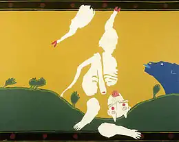 Numa nova fase da sua obra, apresentada pela primeira vez na exposição individual de 1982, as superfícies libertam-se da textura, assumindo a plenitude da cor pura e plana. Mantém-se a relação entre paisagem e figura de séries anteriores, pesquisando a habitação dos lugares como fundação de uma narrativa. Personagens arquetípicas povoam essas paisagens (figuras híbridas e andróginas, faunos, diabos, touros…). "Planos de cor plana, rasgados e colados à maneira dos guaches recortados de Matisse, concebem paisagens de cores puras a lembrarem a infância alentejana. É o recorte rude das extensões de cor pura que constitui a silhueta da paisagem". Experimenta, depois, as perfurações, as ruturas da superfície, como elementos adicionais do seu léxico figurativo (olhos, nariz, boca…), que são utilizados como ausência, como elementos subtrativos que intensificam a interioridade das figuras.[8]
