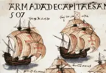 Apesar de florescer em Portugal, a heráldica teve uma lenta evolução no Brasil, e os exemplos de armas concedidas ao longo de todo o período colonial são poucos e mal documentados.[2] Os primeiros símbolos portugueses presentes no território brasileiro foram bandeiras que continham figuras heráldicas. O pavilhão da Ordem de Cristo, instituição que contribuiu para as navegações, com um campo branco onde se espraia uma cruz vermelha, foi exposto em Belém antes da partida de Pedro Álvares Cabral, sendo bento pelo bispo de Ceuta e entregue ao explorador pelo rei D. Manuel. Este pavilhão foi arvorado na primeira missa celebrada no Brasil, em 1º de maio de 1500, conforme a narrativa de Pero Vaz de Caminha: "Ali era com o Capitão a bandeira de Cristo, com que saiu de Belém, a qual esteve sempre alta, da parte do Evangelho", e na cruz levantada para a missa foi afixada a divisa pessoal de D. Manuel, a esfera armilar de ouro: "Chantada a cruz com armas e divisa de Vossa Alteza, que primeiro lhe pregaram, armaram altar ao pé dela". A cruz de Cristo, as "rubras insígnias", era pintada também nas velas da frota cabralina, e nos marcos levantados pelos portugueses a partir de 1503 para assinalar a tomada de posse da terra foram inscritos o escudo real e a cruz de Cristo. Provavelmente foi trazida na frota também a bandeira real, com um campo branco onde era inscrito o escudo real debaixo da cruz de Cristo.[3] Nesta época a maioria das bandeiras ainda eram heráldicas, trazendo o escudo completo do proprietário privado, dinastias ou do ente territorial que representavam, ou algum elemento do escudo, e embora depois se tornassem mais variadas, a heráldica continua ainda hoje sendo a principal diretriz para a composição de bandeiras oficiais.[4]