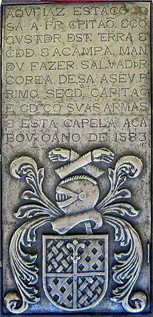 Brasão primitivo de Salvador, 1549, o primeiro concedido a uma cidade brasileira. |