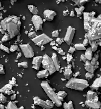 | Aparência | cristais brancos (amostras puras) pó cinza (material comercial) |