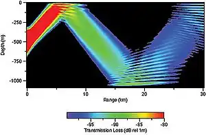 Em 1919, o primeiro documento sobre acústica submarina foi publicado,[5] teoricamente descrevendo os raios de refração de som produzidos por gradientes de temperatura e salinidade no oceano. A série de predições do documento foram experimentalmente validadas pelas medidas de transmissões perdidas.