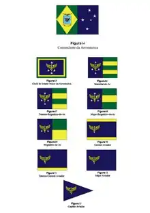 Há uma simbologia oficial, regulada por documento, que define bandeiras-insígnias para patentes do oficialato das Forças Armadas do Brasil.[10]