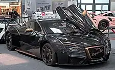 O design estilístico do carro ficou a cargo do estúdio de design Cero Design,[6] com sede em Barcelona, dando-lhe uma estética que combina soluções estilísticas vanguardistas e futuristas com uma estética retro que lembra diretamente o Hispano-Suiza H6B Dubonnet Xenia.[7] Entre outros destaques, estão as rodas cobertas traseiras, bem como uma traseira pontiaguda decorada com relevos e logotipos que fazem referência à histórica marca Hispano-Suiza.