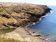 - "Como entraram, e a primeira terra que tomaram, onde saíram, foi, da banda de Oeste, em uma curta praia de uma abra que se faz antre a ponta da terra, que se chama a Praia dos Lobos, e outra ponta, que se chama o Cabrestante, onde vai sair ao mar uma pequena ribeira que corre todo o ano, chamada a ribeira do Capitão, por correr pelas suas terras, que naquela parte depois tomou para si, que são a Faneca, Monte Gordo, Flor da Rosa, Paúl, Roça das Canas, donde nasce aquela ribeira que vai ter ali ao mar, junto do Cabrestante; onde se fez pelo tempo adiante o primeiro coval [sementeira], junto da mesma ribeira, em uma pedra mole, como tufo, e amarela, como barro, que se corta à enxada, a que chamam saibro, no qual saibro, onde quer que o há na ilha, se dá o melhor vinho dela; onde se encovou o primeiro trigo que deu a terra.