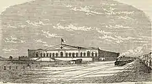 O caminho de ferro atingiu Beja em 1864.[15] Em 25 de Janeiro de 1866, uma carta de lei estabeleceu que o caminho de ferro deveria terminar em Faro, e que deveria estar concluído até 1 de Janeiro de 1869.[16] Desta forma, iniciaram-se desde logo as obras até Faro, tendo o percurso a partir de Casével sido construído em vários lanços independentes, de forma a empregar os habitantes das regiões, de forma a aliviar a carestia que se fazia sentir.[17] Nos finais de 1866, os trabalhos já estavam muito avançados no Algarve, tendo sido já quase concluídas as obras de movimentação de terras quase terminadas entre Boliqueime e Faro, enquanto que as vias de resguardo em várias estações, sete casas de guarda de passagem de nível e os edifícios de Loulé e Boliqueime já estavam concluídos.[18] Também estava quase terminada a casa das máquinas em Faro, e tinham sido instalados alguns quilómetros de via fora das estações.[18]