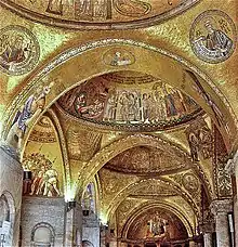 No século XII, os venezianos também ganharam extensos privilégios comerciais no Império Bizantino e seus navios amiúde forneciam ao império uma armada. Em 1182, houve uma revolta antiocidental em Constantinopla, na qual os venezianos foram o principal alvo. A frota veneziana foi crucial para o transporte da Quarta Cruzada, mas quando o cruzados não puderam pagar os navios, o astuto e manipulativo doge Henrique Dândolo rapidamente explorou a situação e ofereceu transporte aos cruzados se eles capturassem a cidade dálmata (cristã) de Zara (atual Zadar), que se tinha rebelado contra Veneza em 1183, se posto sob proteção dual da Santa Sé e do rei Emérico da Hungria (r. 1196–1204) e se tinha provado também bem fortificada demais para Veneza retomá-la sozinha.[18] Além de cumprir esta condição, a cruzada foi de novo desviada para Constantinopla, a capital do Império Bizantino, então outro rival de Veneza. A cidade foi capturada e saqueada em 1204. O saque foi descrito como um dos mais trágicos e lucrativos na História.[19]