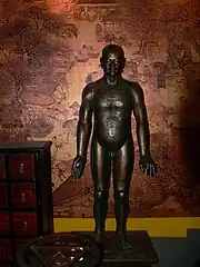 A Dinastia Ming, de 1368 a 1644, foi o período de consolidação do conhecimento médico chinês e, consequentemente, da acupuntura. Entre 1518-1593 o médico Li Shizhen publica Compêndio de matéria médica (Ben Cao Gang Mu) com recomendações da moxabustão para esquentar os canais e eliminar o frio e umidade. Inclui detalhada descrição da farmacopéia até então conhecida, reunindo 443 produtos derivados de animais; 1074 substancias vegetais e 354 produtos minerais.[15][16]